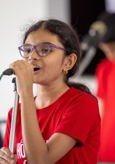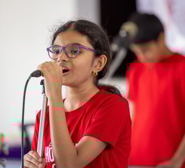 Students learn how to engage an audience, maintain eye contact, and project their energy, turning a simple song into a captivating performance.